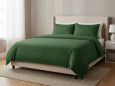 Seti ofrohet në katër ngjyra elegante dhe moderne: Jeshile– natyrale dhe qetësuese . Kafe – e ngrohtë dhe tokësore · Blu – e pastër dhe relaksuese Çdo ngjyrë sjell harmoni dhe një pamje të freskët në dhomën tuaj të gjumit. Këllëfi i jorganit mbyllet me butona të fshehur, duke krijuar një pamje të rregullt dhe elegante. Këllëfi i jastëkut mbyllet me palë praktike që sigurojnë mbajtje më të mirë dhe pamje të pastër.